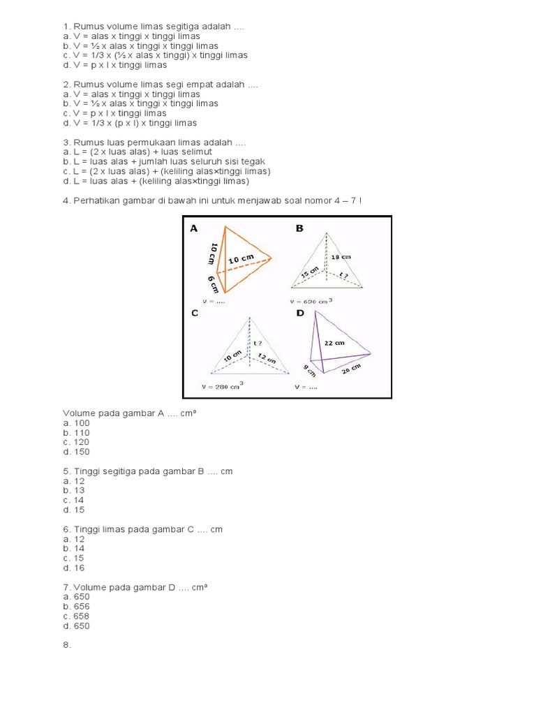 untuk "Rumus Luas Limas Segitiga - Rumus Volume Dan Luas Permukaan Limas Contoh Soal Vuiral : Sebuah limas segi tiga memiliki luas alas 22 cm2 dan tinggi 8 cm."